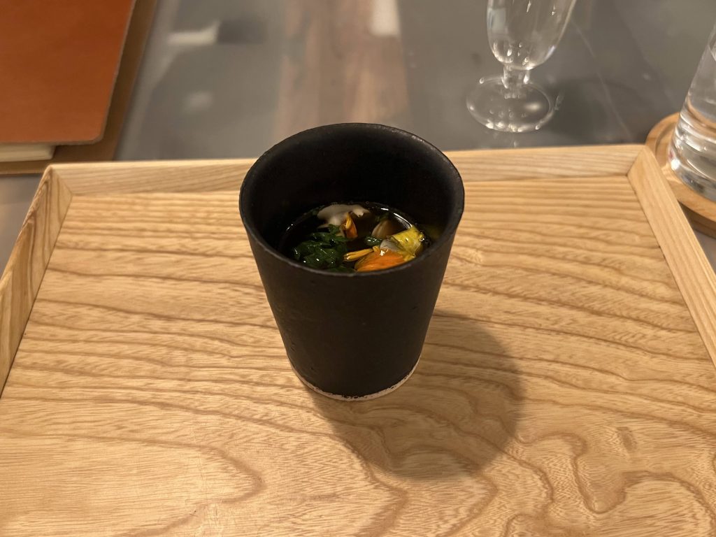 木を基調とした店内に手触り感のある食器やインテリア。和の食材がふんだんに使われたイノベーティブな料理。華美というより侘び寂びな美意識が多方面に垣間見える、非常に素敵なレストランでした。