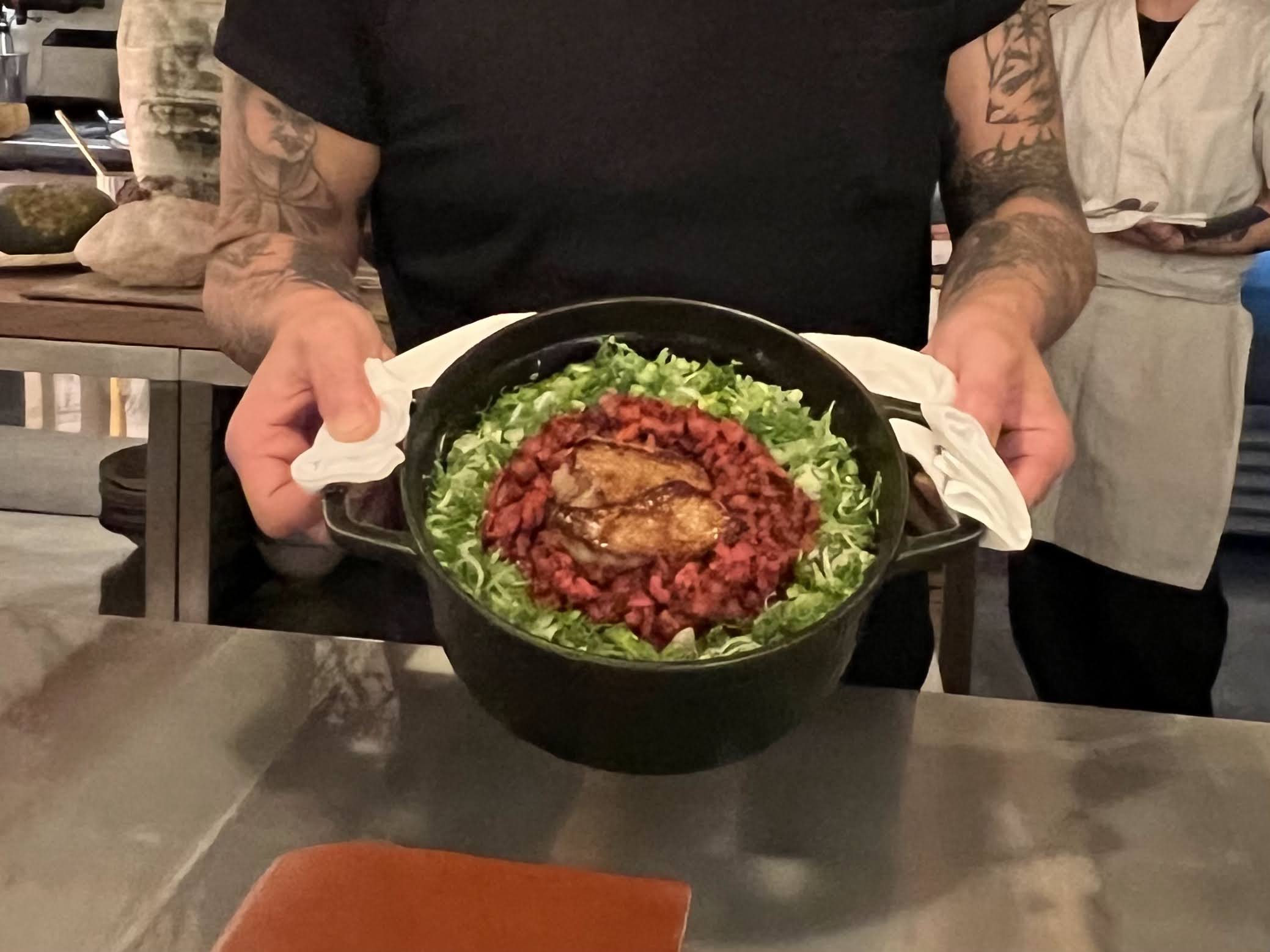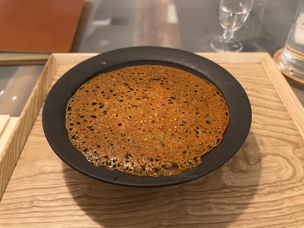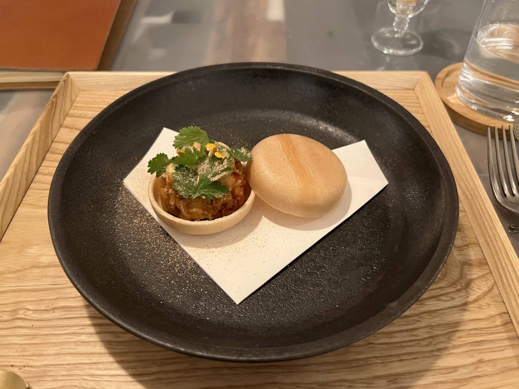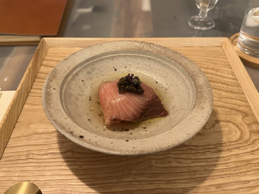 イエローテイルのキャビア。「一番好きだったのは?」と聞かれたら1位2位を争うほど個人的に好きだった一皿。良い具合に脂がのってて、単体で食べても十分に美味しい。下のフレッシュな大根と和風ベースのソースがまた美味しくて一瞬で食べ終えてしまった。