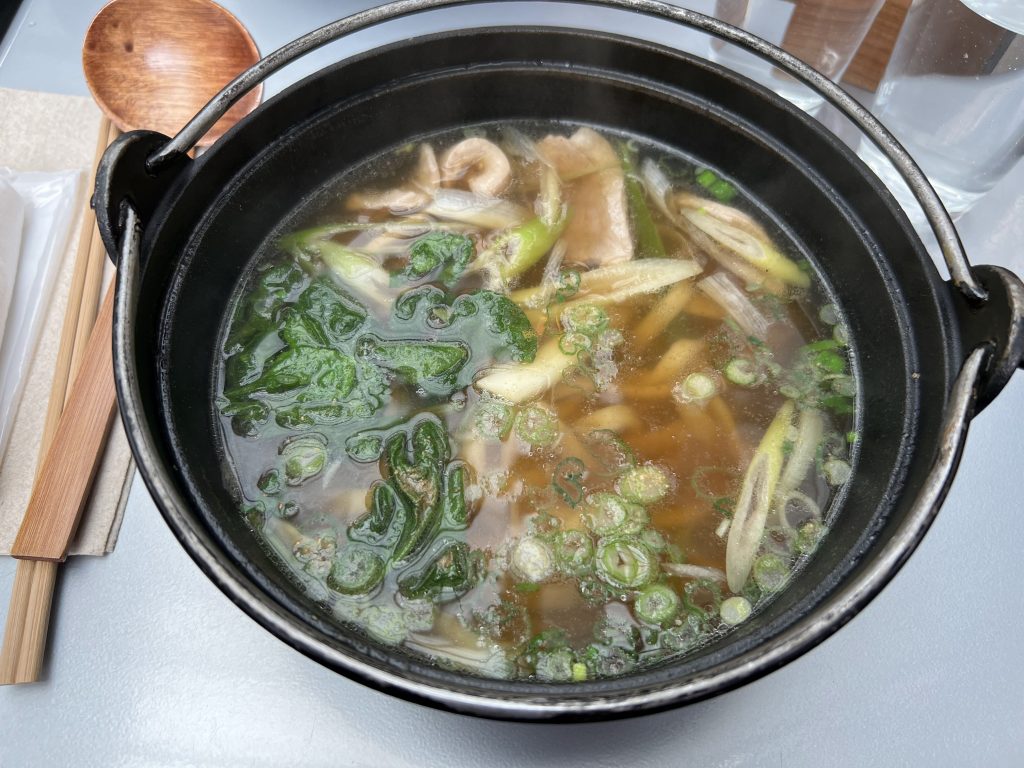 鴨南うどんを頼んでみました。鉄鍋で出てくるので温かいまま食べられるのが嬉しい。モチっとこしのあるうどんが美味しいです。五臓六腑に染み渡る優しいお出汁の味がまた良い!