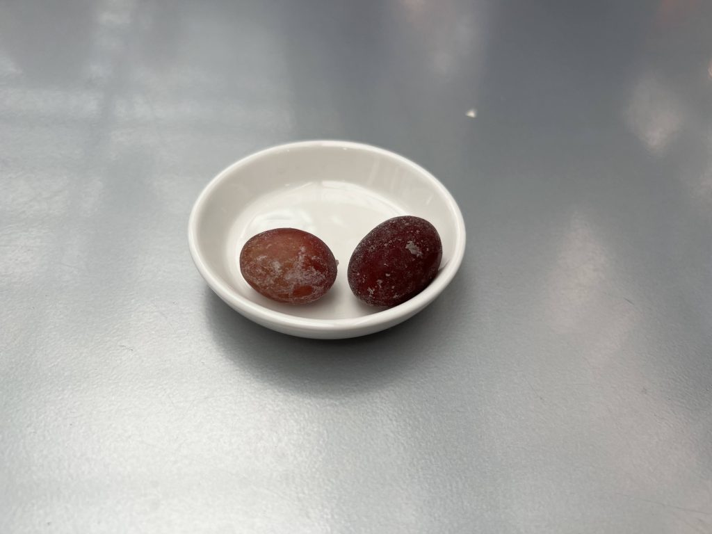 食後にはタダでお口直しのブドウが出てきました。