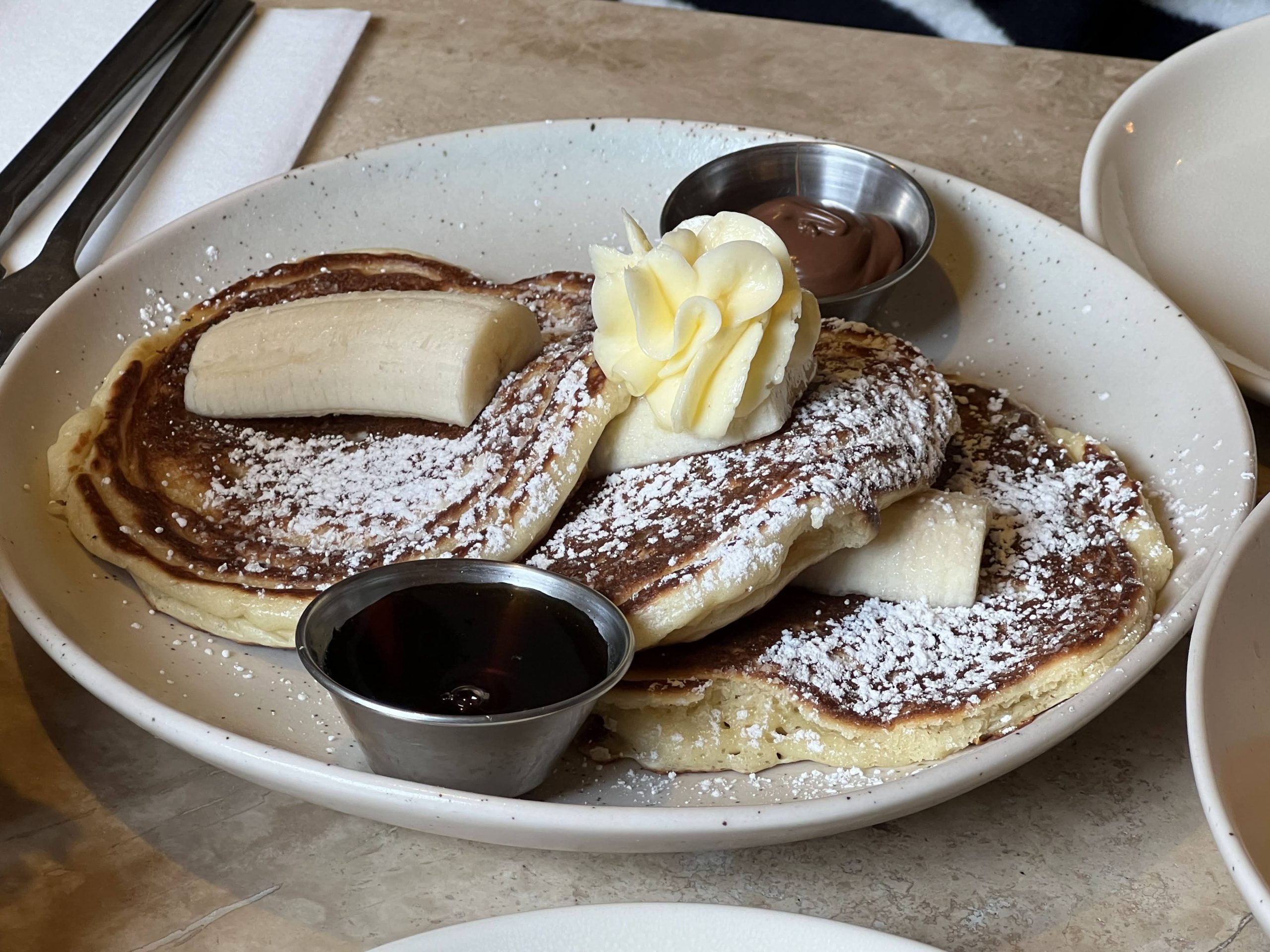 こちらも人気メニュー?のリコッタパンケーキ。シンプルだけど優しい甘さのパンケーキで日本人が好きそうな味だなと思います!添えらているバナナ、ハニーコムバター(蜂蜜で作った飴を練りこんだバターの事らしい)、メープル、ヌテラで色々と楽しめるのも嬉しい。安定の美味しさでした!