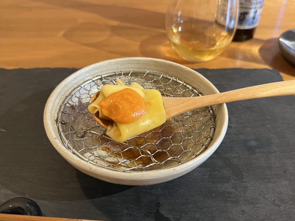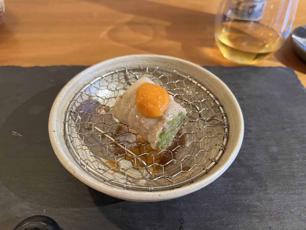 この二つの前に和州牛の手巻きが出てきました。肉質がしっかりしているのもあり、肉寿司を食べているような感覚。これも美味しかったです。